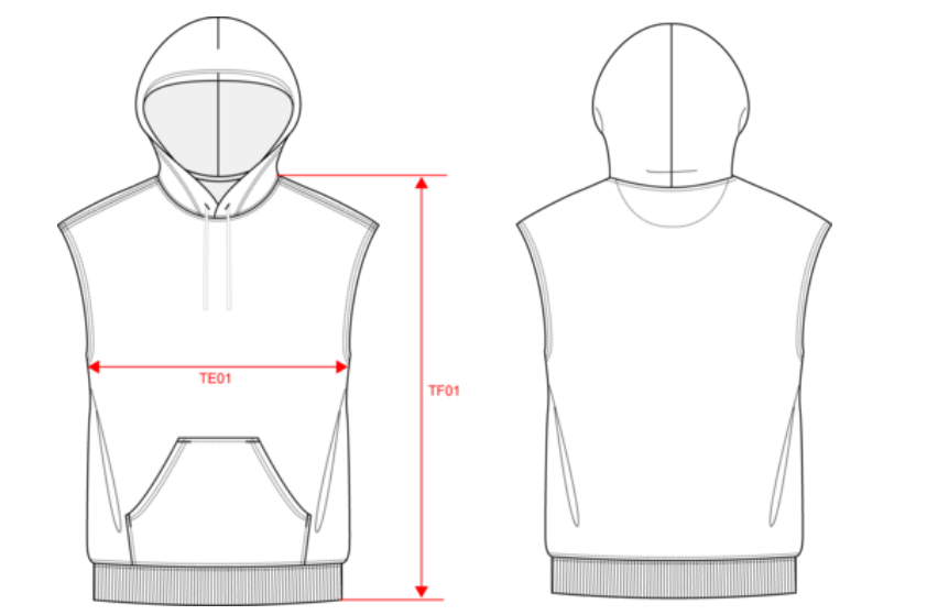 | TE01 - 1/2 chest width at 1.5cm below armhole | 51 | 54 | 57 | 60 | 63 | 66 | 69 | 72 |
